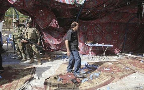 Officials said the suicide bomber attacked a gathering of Shiites in the al-Shaab area of northern Baghdad, detonating explosives inside a tent erected for the Shiite holy day of Ashura. Some of the victims were inside the tent mourning the death of a local resident.