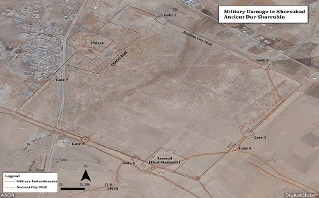 After liberating the village of Khorsabad, the Kurds militarized the mount of the site just outside it, building trenches on top of the ancient city walls and military posts on top of the archeological remains of the city gates.