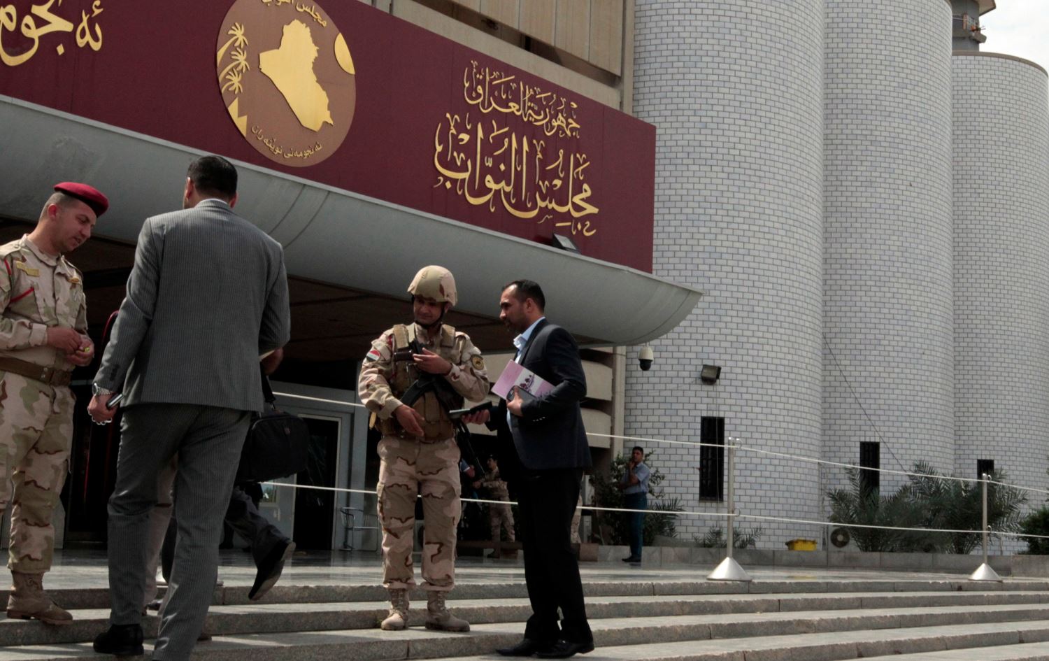 Iraqi security forces stand guard outside the parliament in Baghdad on April 13, 2016. Photo: AFP