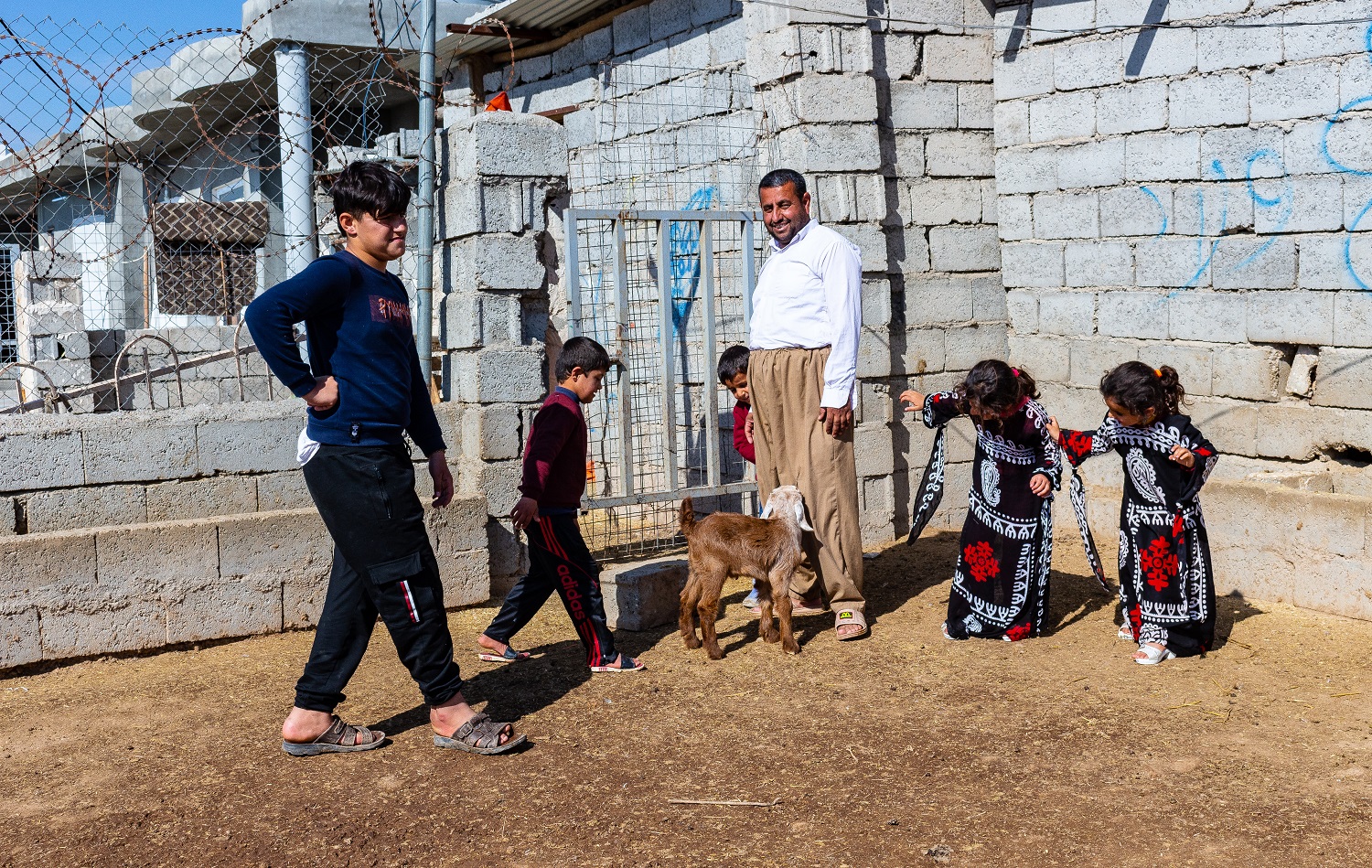 Back on the farm outside of Kifri, the family gathers for lunch. Women lay out plastic sheets and cushions on the concrete courtyard, calling in playing children to sit where, minutes earlier, the family patriarch had said his prayers. As we spoon white bean soup and chunks of tender meat onto rice, a chicken strays into the yard looking for a snack, but it’s chased out by one of the children and the family shares a laugh.