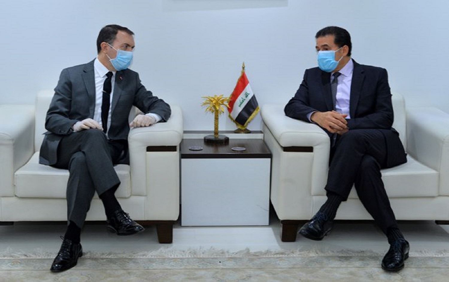 Turkish ambassador Fateh Yildiz and Senior Foreign Ministry Undersecretary Ambassador Abdel Karim Hashim convene over recent Turkish airstrikes on Iraqi territory. Photo: Iraqi Ministry of Foreign Affairs