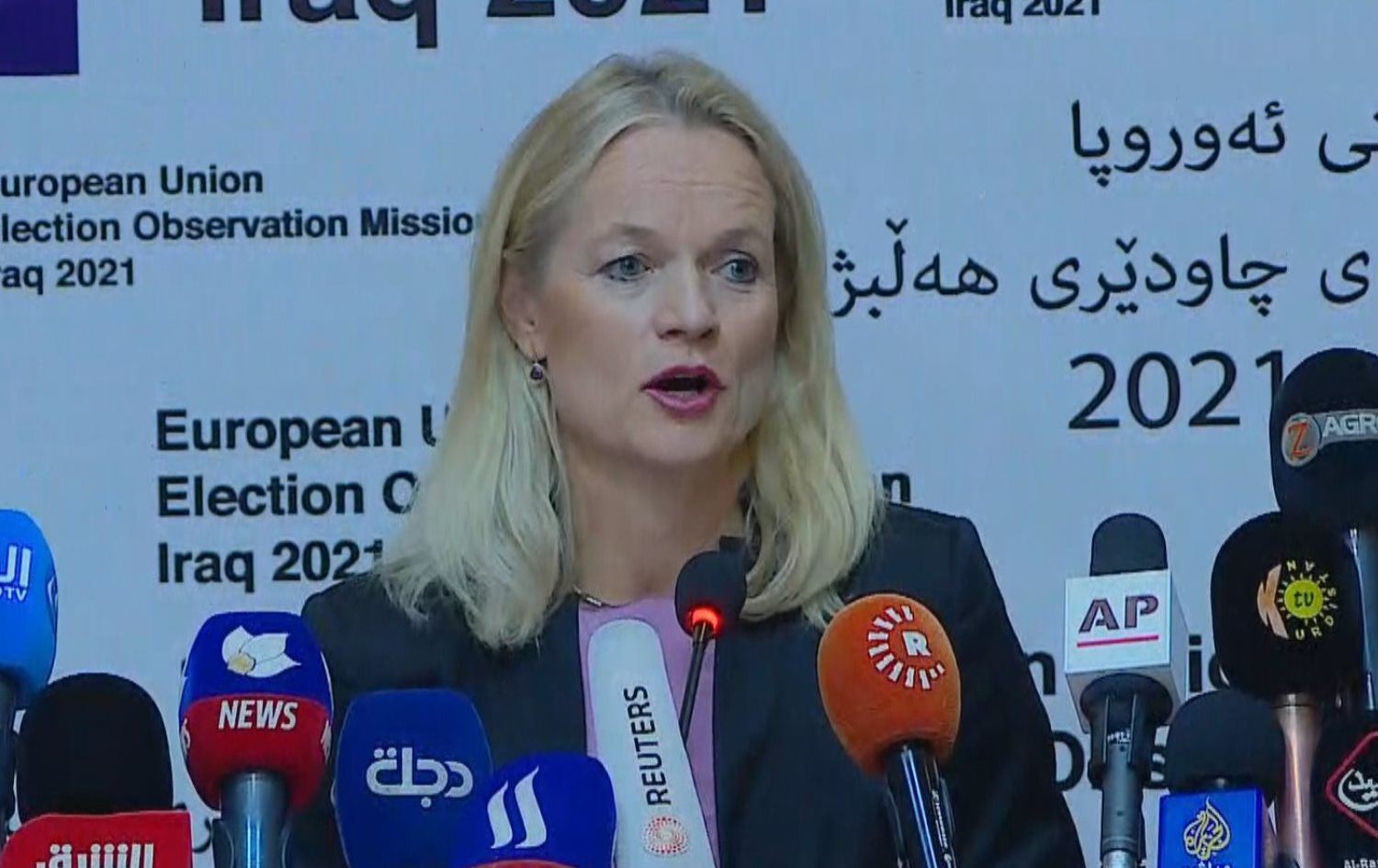 EU election observation mission chief, Viola von Cramon in a press conference in Baghdad on September 16, 2021. Photo: Rudaw/screenshot