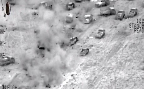The convoy, armed with light and heavy weaponry as well as explosives, was attempting to halt the advance of the Iraqi army in the Rawa district of Anbar province.