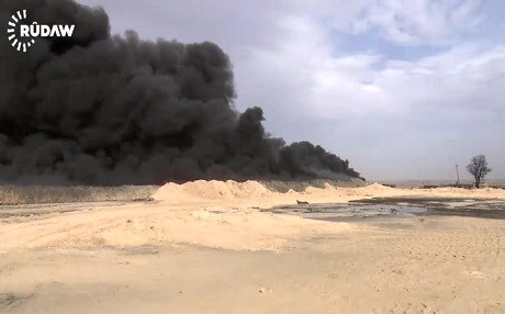 QAYYARA, Iraq--Almost three months after the retreating Islamic State set oil wells ablaze in Qayyara, 60 km south of Mosul, more than a dozen oil wells continue to burn and release black smoke into the sky, Rudaw’s reporter Sidar Lashkri reported on Tuesday.