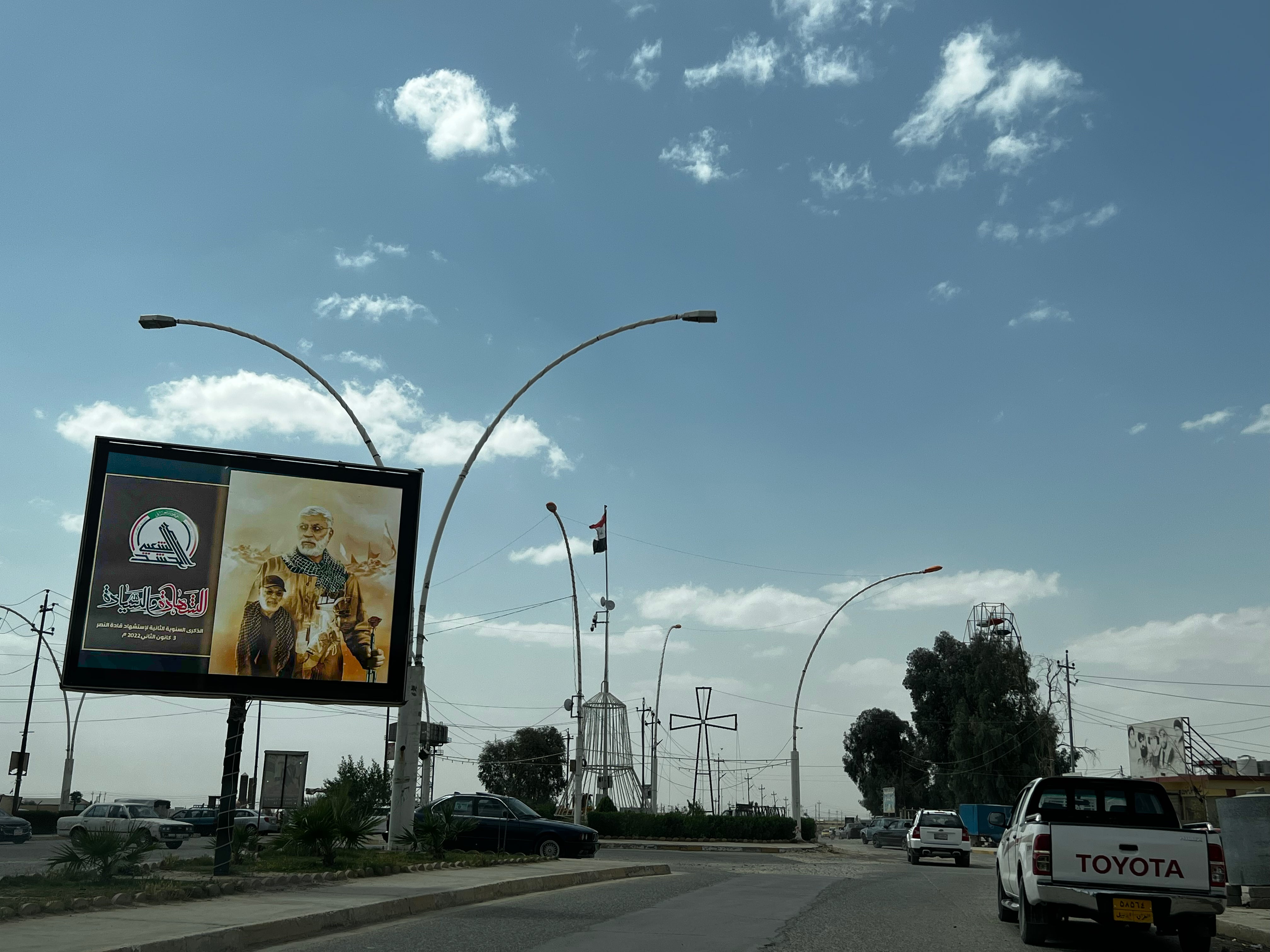 The streets of the town are all covered by images of Shiite Islamic figures such as Iranian supreme leader Ali Khamenei, Iraq’s top Shiite authority Ayatollah Ali al-Sistani, and numerous pictures of Iranian General Qassem Soleimani, and Iraqi militia leader Abu Mahdi al-Muhandis, both killed in Baghdad in 2020 by US drones.