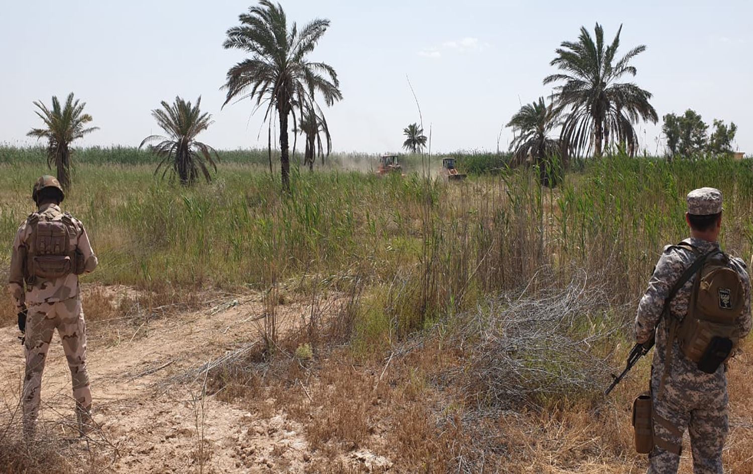Two Iraqi army soldiers standing guard as their units from The Samarra Operations Command continued their search mission of uninhabited terrain areas in Samarra islands and riverbanks with the support of Iraqi Army Aviation units on January 9, 2020. (Iraqi Ministry of Defense)