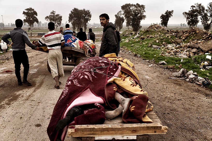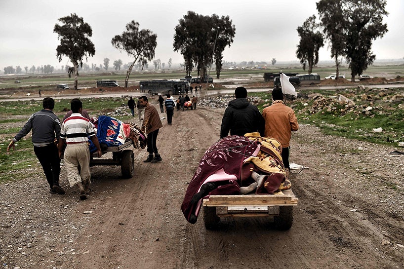 The UN’s humanitarian coordinator for Iraq, Lise Grande, told reporters earlier this week that civilians are at risk whether they choose to flee the city or remain in their homes. Those who choose to stay face extreme risks from crossfire, snipers, and explosive hazards; while families who choose to leave are equally at risk: families get separated, ISIS targets them, and there is a risk of explosive hazards.