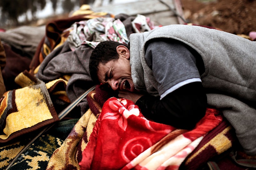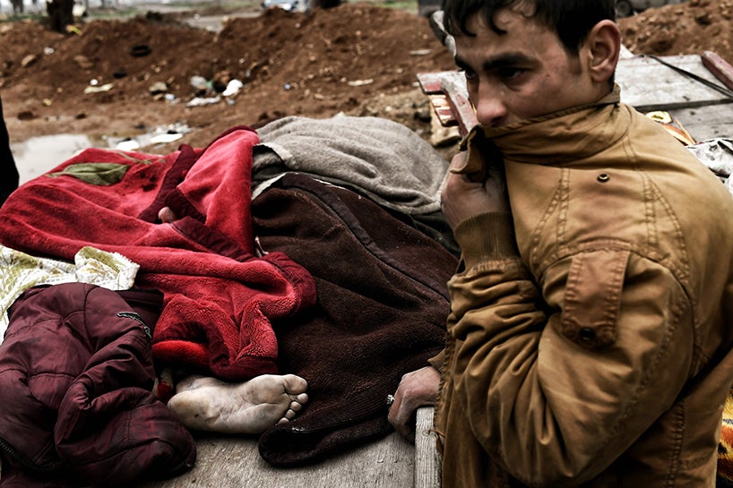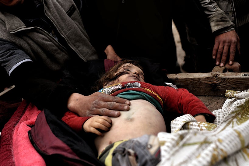“They were pulled from the rubble. Twenty-one bodies, women and children. Even a baby of just six months,” Ziad Khalaf told AFP, pulling a cart bearing the bodies of members of his family.