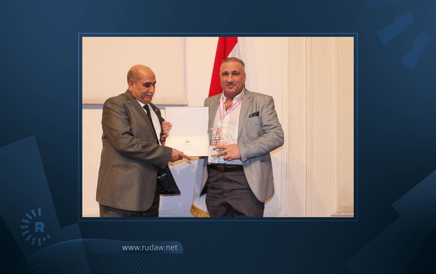 Dhafer Fuad Eliyahu (right) receives a certificate from al-Wasiti hospital in March 2019. Photo: Al-Wasiti Hospital/Facebook