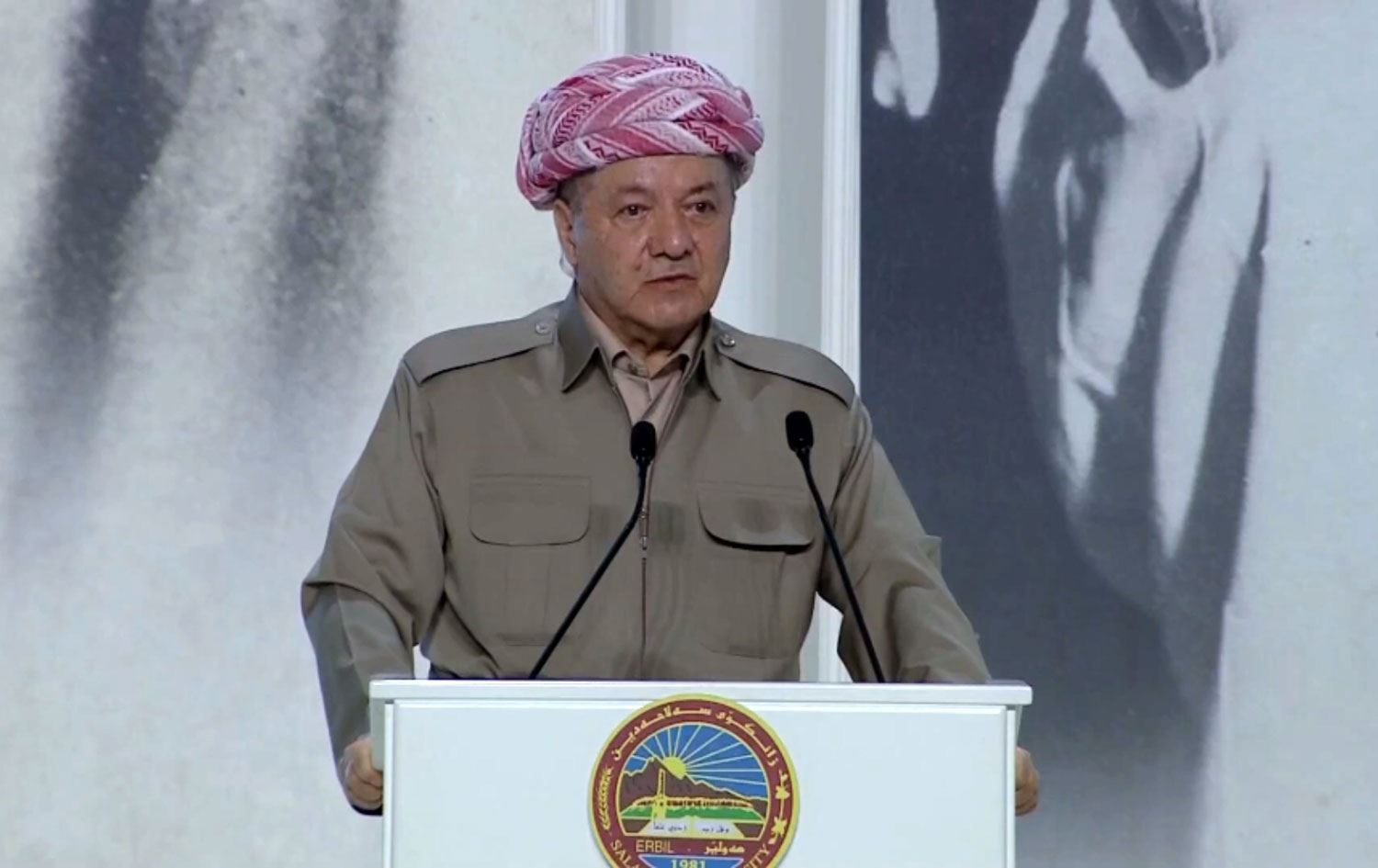 KDP leader Masoud Barzani speaks at an event in Erbil on June 18, 2022. Photo: Screenshot/Rudaw