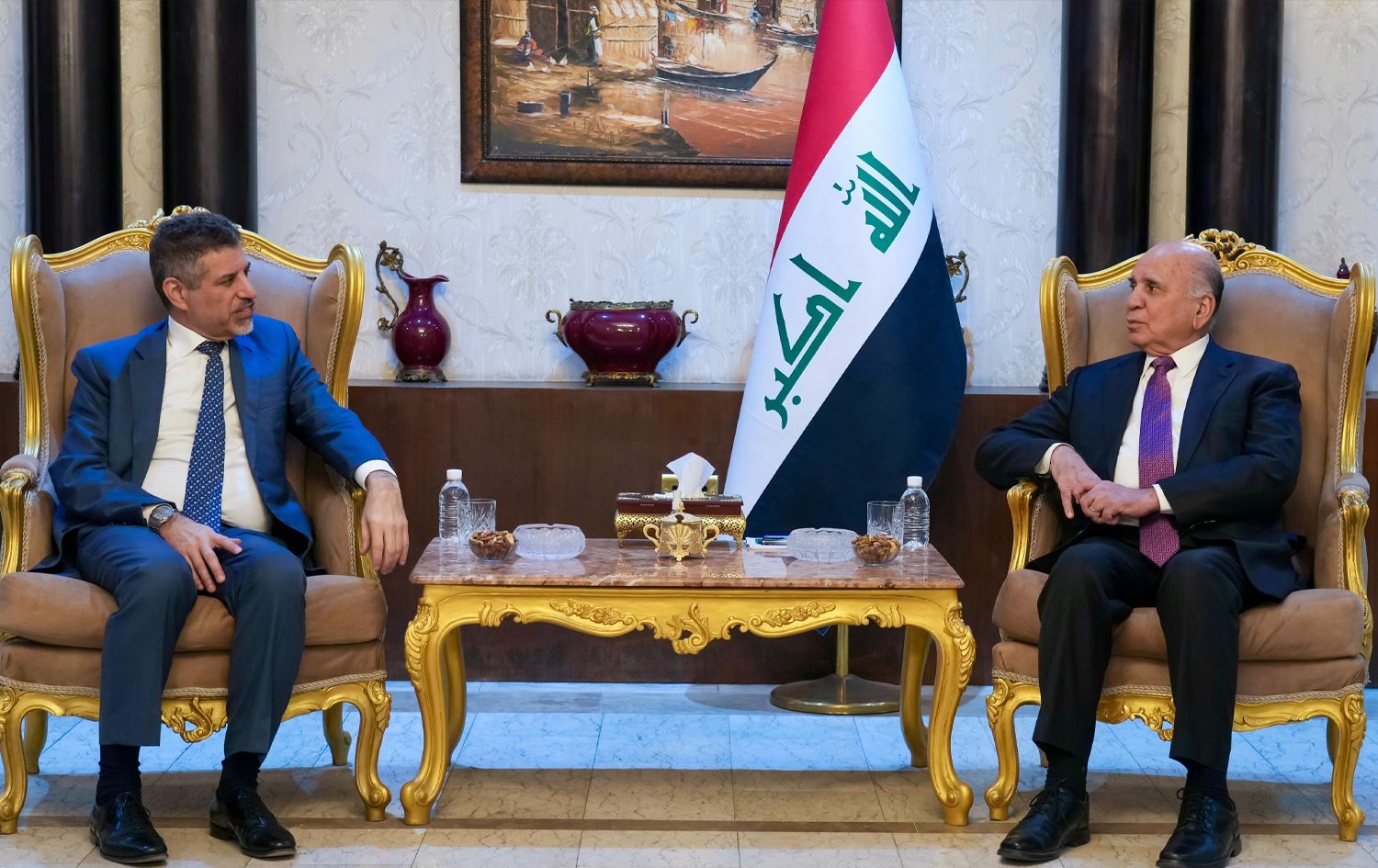 Iraqi Foreign Minister Fuad Hussein (right) and Steve Fagin, charge d'affaires of the US embassy in Baghdad (left), in a meeting in Baghdad on August 18, 2025. Photo: Iraqi foreign ministry