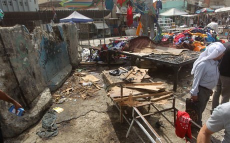 Hospital officials said at least 121 people, some with life threatening injuries, were being treated after the explosions in the Wasba and Bab al-Sharji districts of Baghdad.