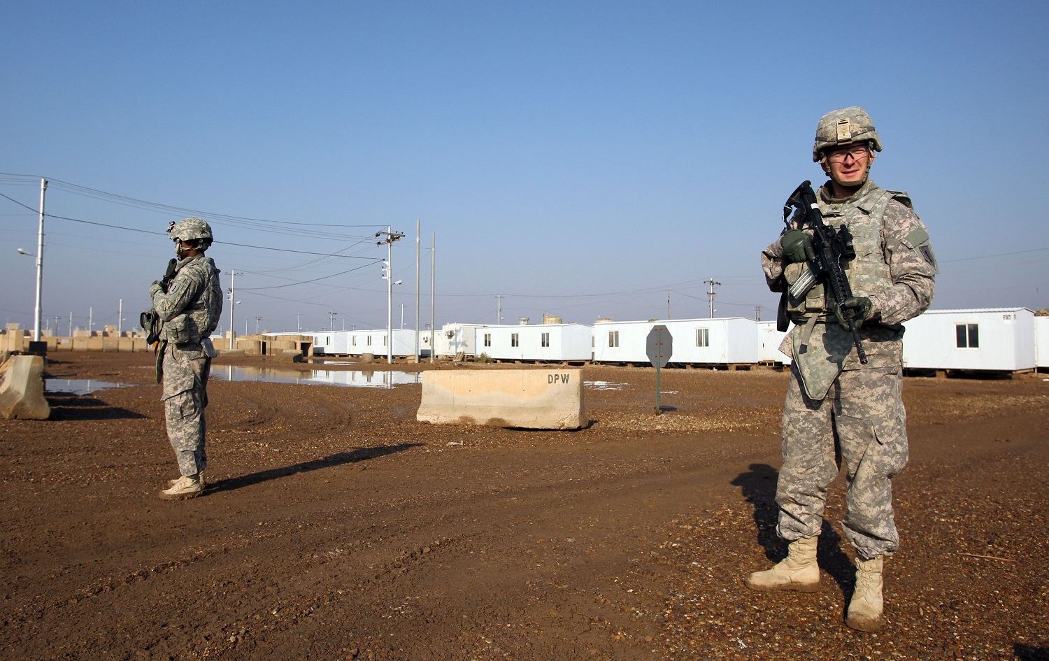 In this file photo taken on December 29, 2014 US soldiers walk around at the Taji base complex 30km north of Baghdad. Photo: Ali Al-Saadi/AFP