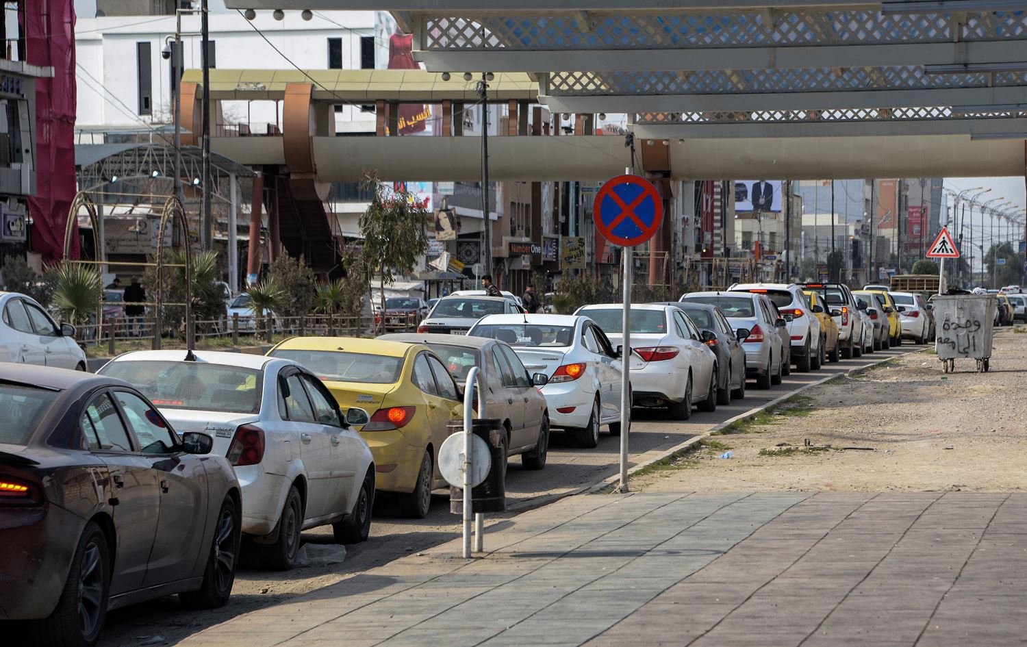 Vehicles queue up to refill on fuel in Iraq's northern city of Mosul on February 18, 2022. Photo: AFP