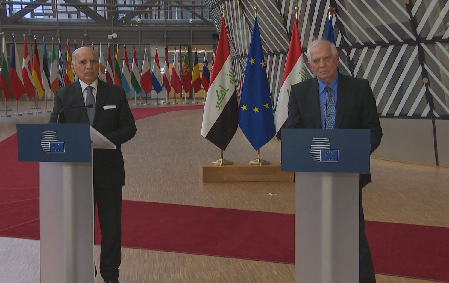 The presser comes as Hussein took part in the third meeting of the Cooperation Council between Iraq and the EU. According to Iraqi state media, Hussein will meet with all EU foreign ministers as part of his visit.