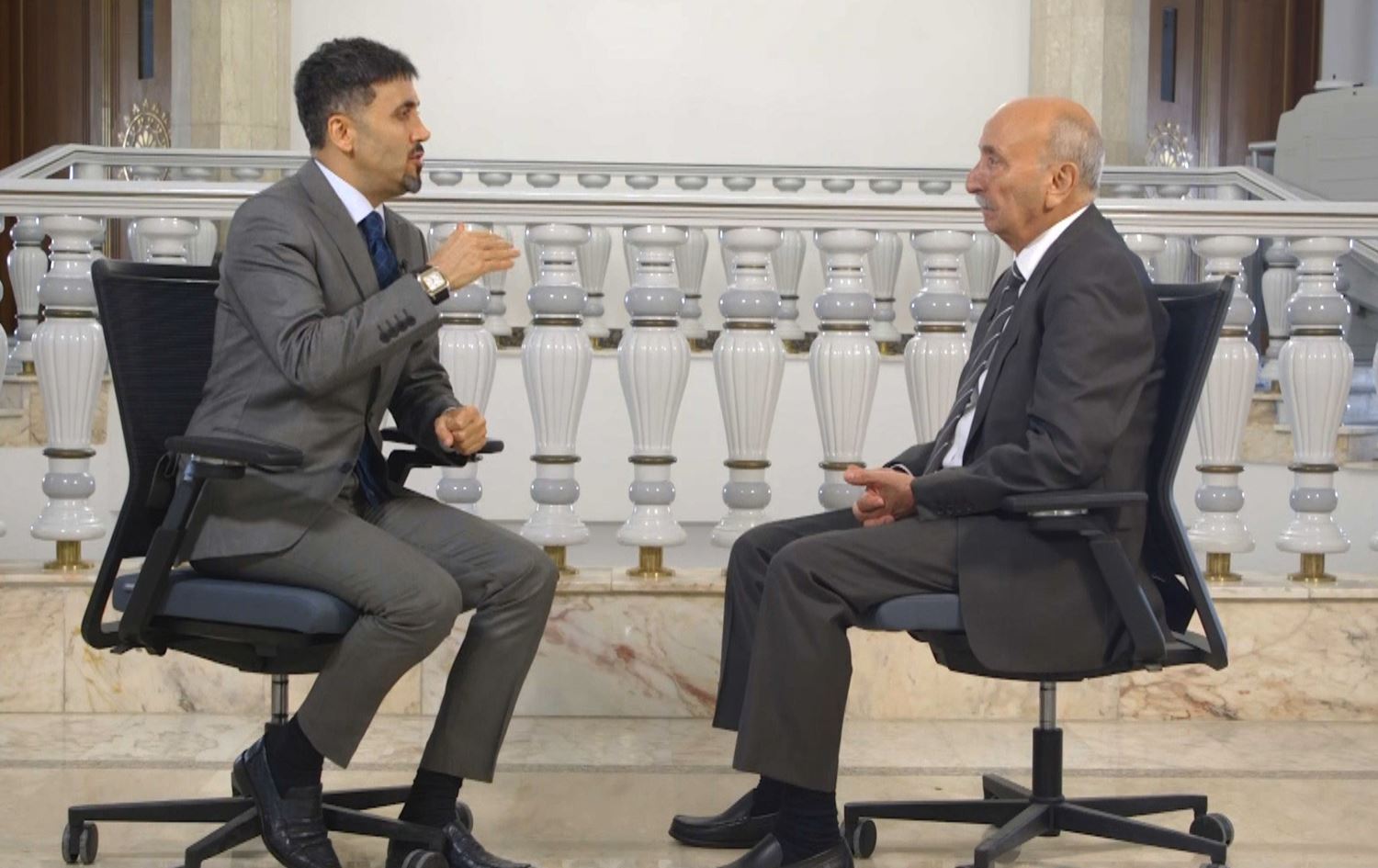 Adnan al-Janabi speaking to Rudaw’s Mohammed Sheikh Fatih in Baghdad on June 18, 2022. Photo: Rudaw