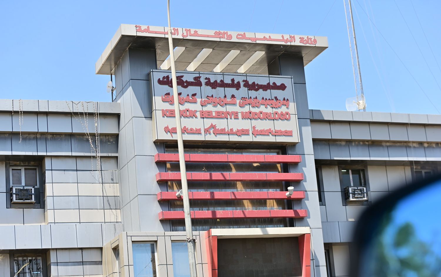The Kurdish, Arabic, Turkmen, and Syriac languages displayed on the Kirkuk municipality building. File photo: Bilind T. Abdullah/Rudaw