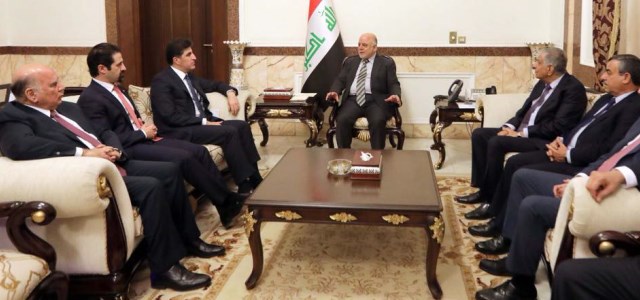 BAGHDAD, Iraq — Kurdish Prime Minister Nechirvan Barzani has met with his Iraqi counterpart Haider al-Abadi in Baghdad on Saturday, just a day before he is scheduled to have a meeting with Iranian officials including President Hassan Rouhani.