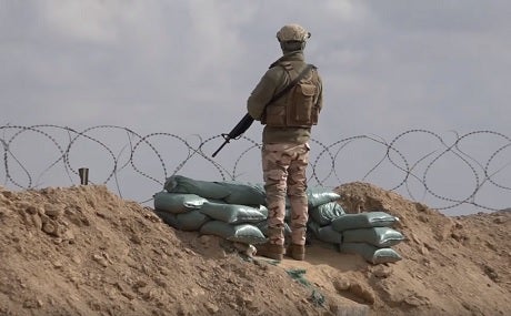 An Iraqi soldier stands guard on the Iraq-Syria border, February 19, 2019. Photo: Iraq Defense Ministry video