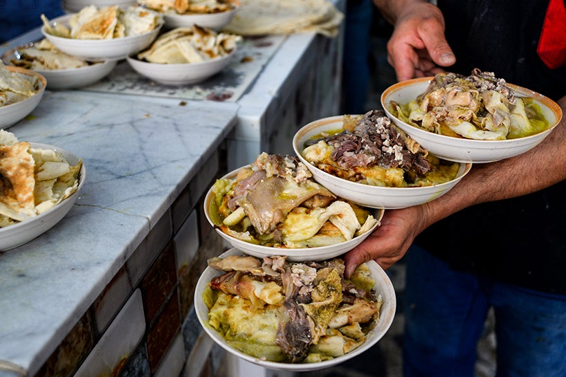 NAJAF, Iraq – Pacha is a traditional dish made from slow-boiled sheep heads, trotters, and stomach served with bread and broth. It has long been a staple of authentic Middle Eastern cuisine.