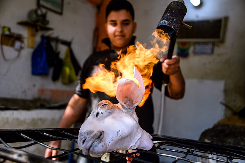 The pictures above show the process of cooking Pacha in the central Iraqi Shiite Muslim shrine city of Najaf on April 20, 2019.