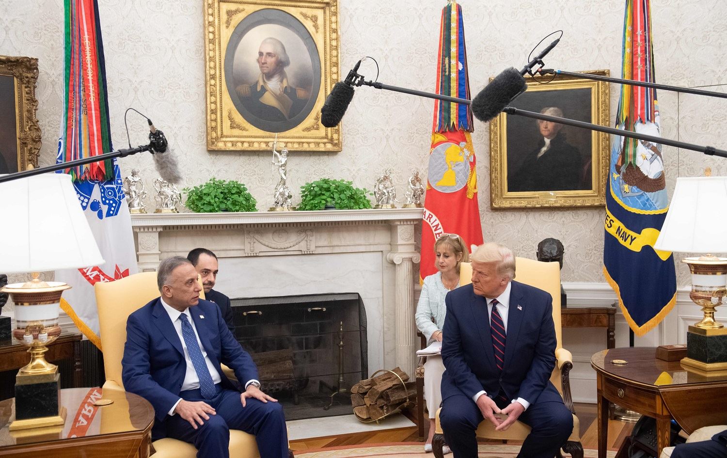 US President Donald Trump (R) meets with Iraqi Prime Minister Mustafa al-Kadhimi in the Oval Office of the White House in Washington, DC, August 20, 2020. Photo: Saul Loeb/AFP