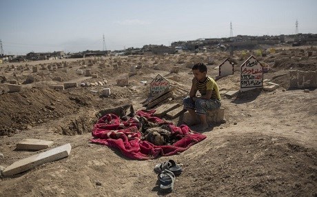 By dawn, dozens of Mosul families begin to line up outside the civil defense office each day. One by one they flatly describe their personal tragedies: “we buried my cousin’s body in the garden under the tree.” ″My mother was hiding in the back of the house, near the kitchen when the airstrike hit her home.” ″We buried my father in the street in front of our home after he was shot.”