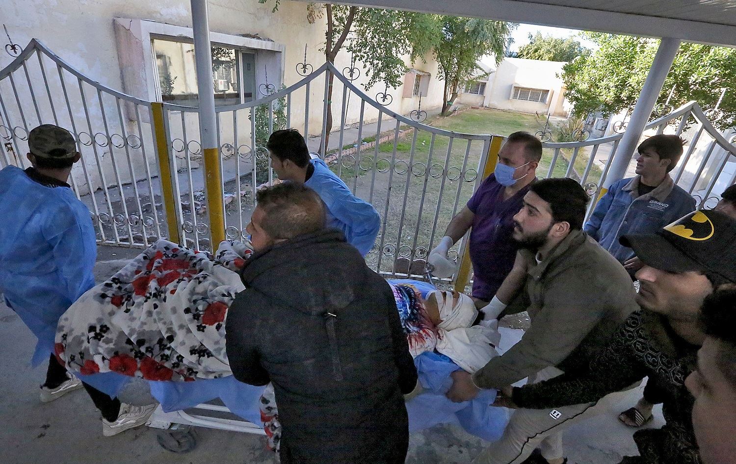 An injured man is rushed to a hospital following a twin suicide bombing on a bustling commercial street in the heart of the Iraqi capital Baghdad, on January 21, 2021. Photo: Sabah Arar/AFP