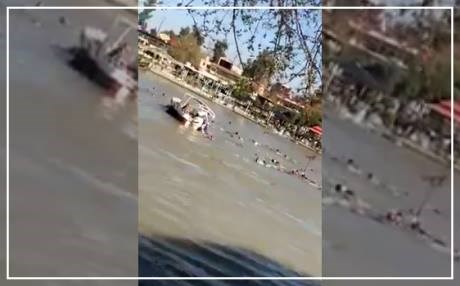 The Tigris River had swelled after heavy rains and video of the incident showed dozens of people struggling in the fast-moving water next to the overturned boat.