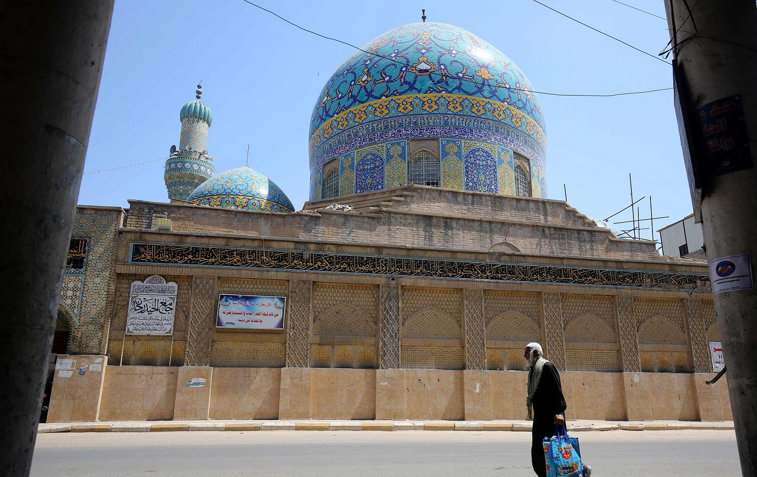 An Iraqi man walks past the closed Haydar-Khana mosque in the capital Baghdad on April 17, 2020. Photo: Ahmad al-Rubaye / AFP