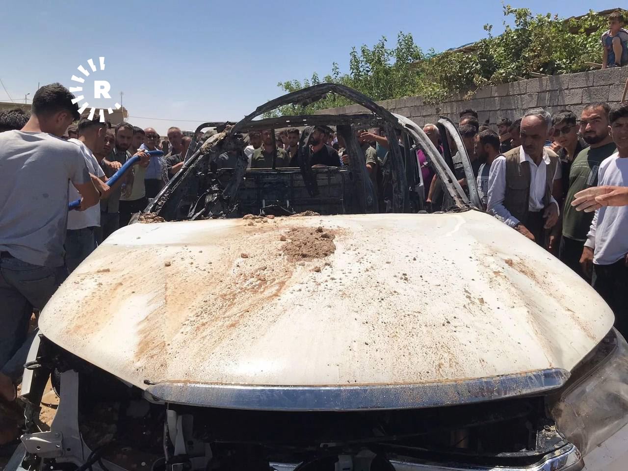 Vehicle targeted by suspected Turkish air forces in Makhmour camp