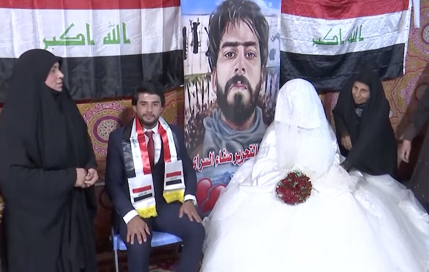 The groom, Saif Ali Hussein, regularly protested in the mass demonstrations that have swept Iraq in recent weeks.