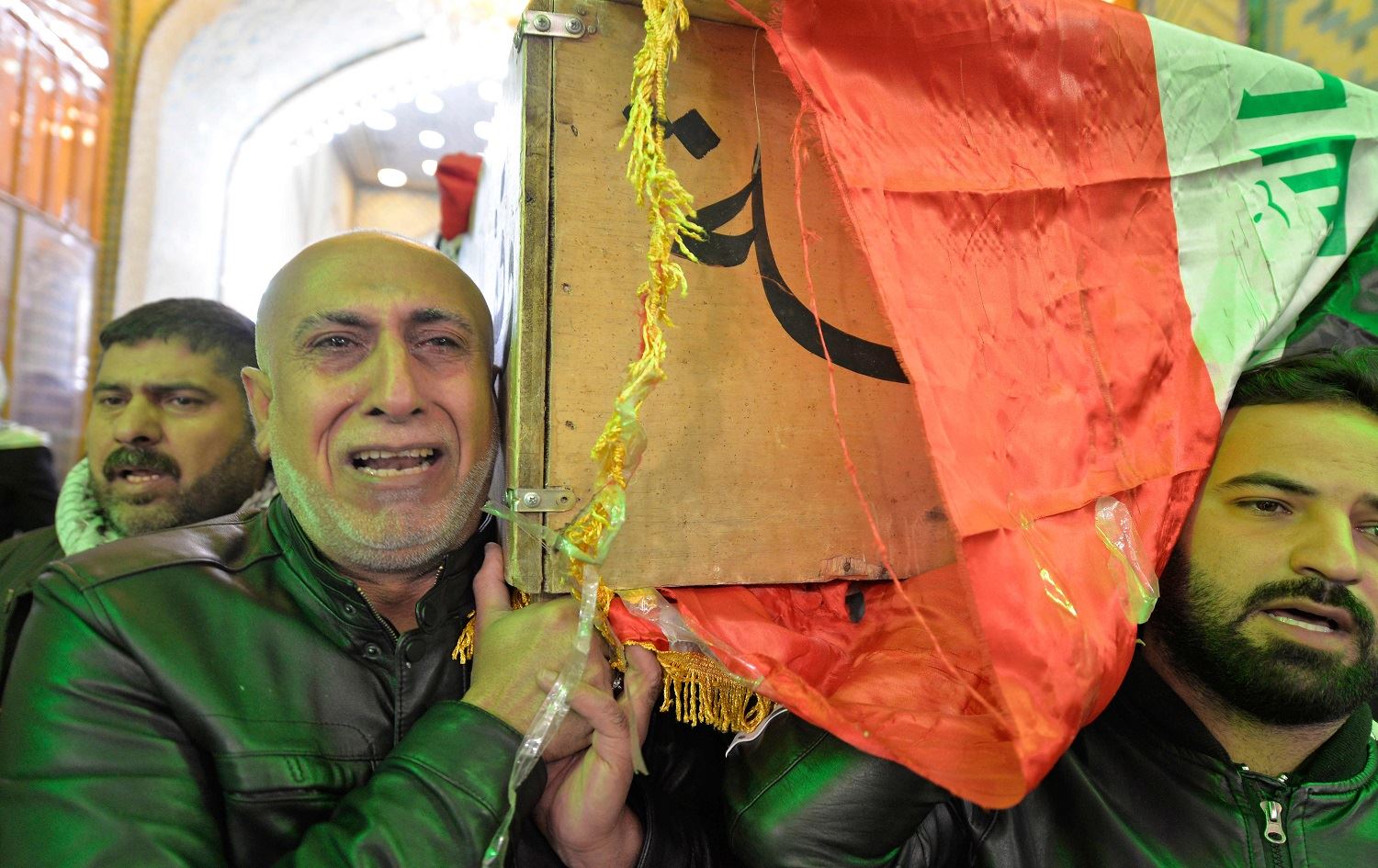 Mourners carry the coffin of a victim who was killed in a twin suicide bombing in central Baghdad, during a funeral in the holy city of Najaf on January 21, 2021. Photo: Ali Najafi/AFP