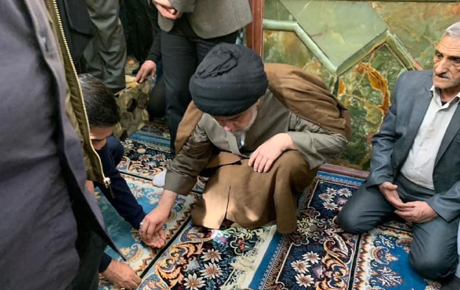 Iraqi cleric Muqtada al-Sadr prays at the mausoleum of Imam Ali in Najaf on February 22, 2020. Photo: AFP / Muqtada al-Sadr's press office