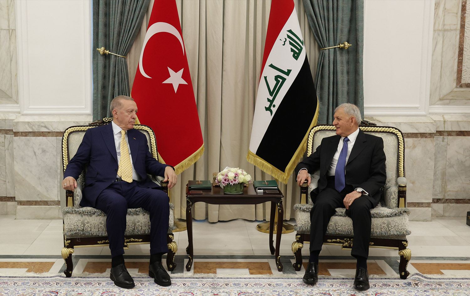 Rashid and Erdogan “held bilateral discussions that dealt with strengthening relations between the two countries and mechanisms for developing cooperation in various fields. The need for coordination and joint work was also stressed in order to reach satisfactory solutions to issues related to security, economy, and water,” said a statement from the Iraqi presidency.