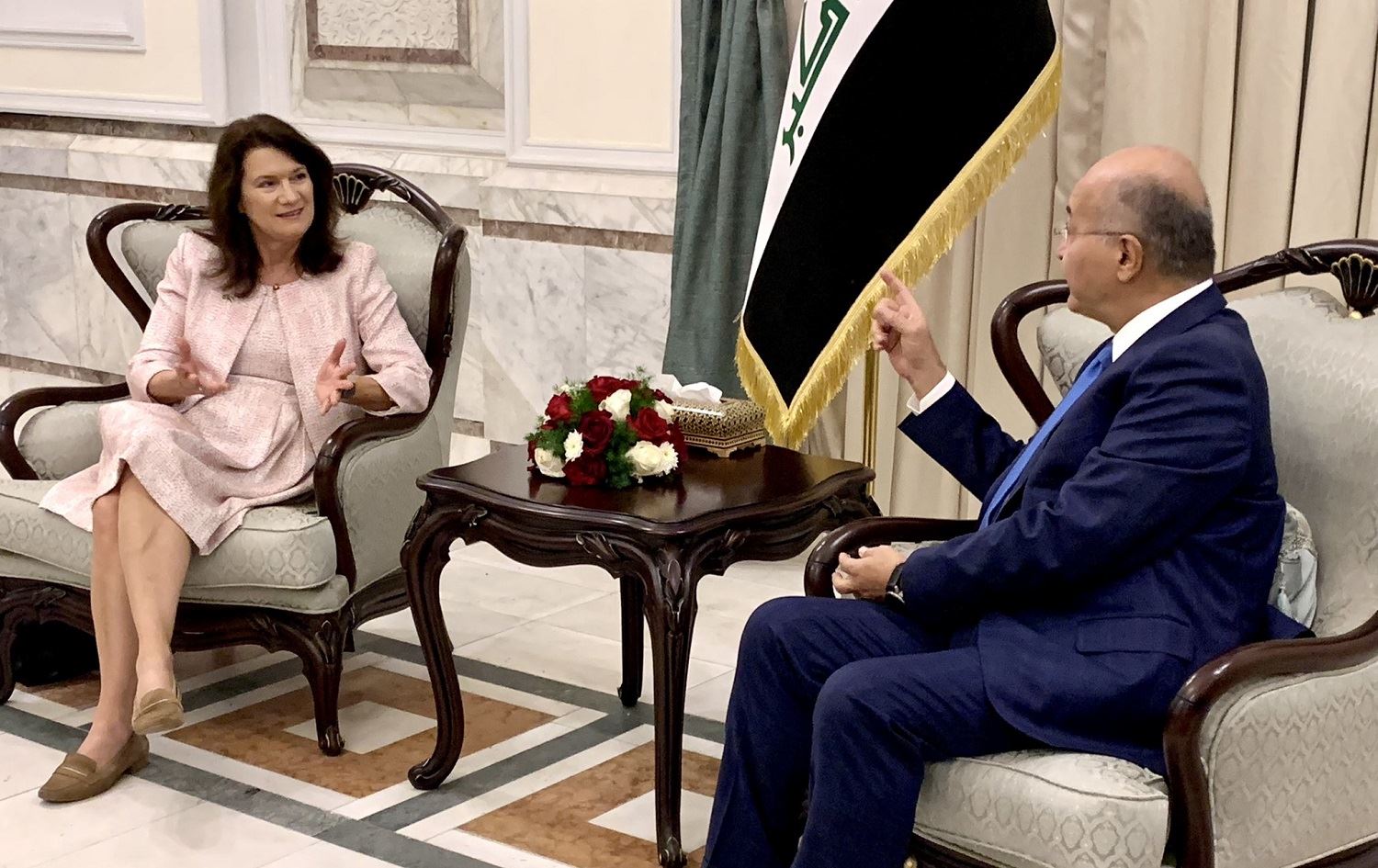 Linde also discussed “international and regional cooperation to uproot terrorism, extremism, corruption and confront climate change and preserve the environment,” when she met with Iraqi President Barham Salih.