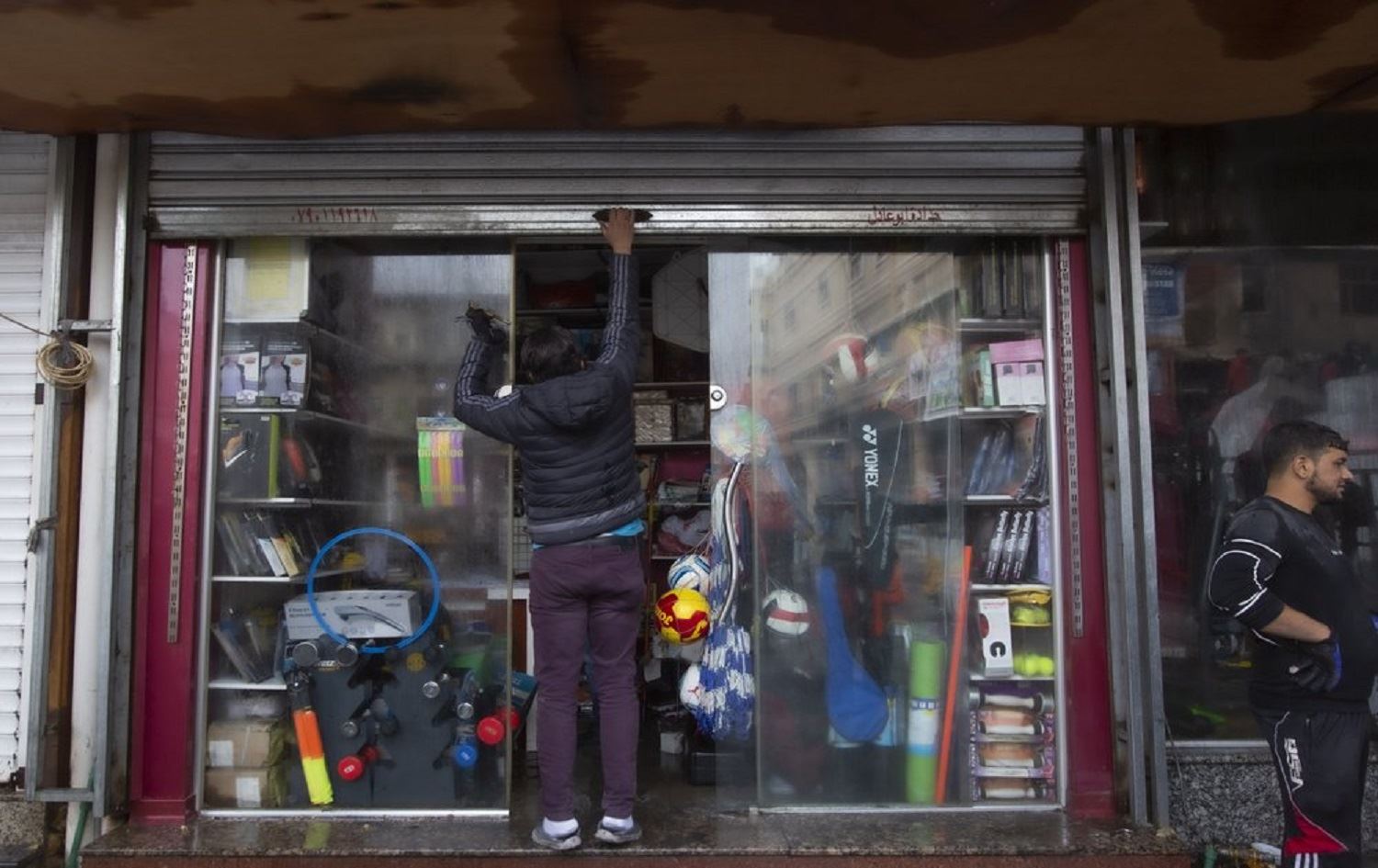 An man opens his sports supplies store to inspect the damage caused by fire, smoke and leaking water after clashes between protesters and riot police oin December 15. Photo: Nasser Nasser/ AP