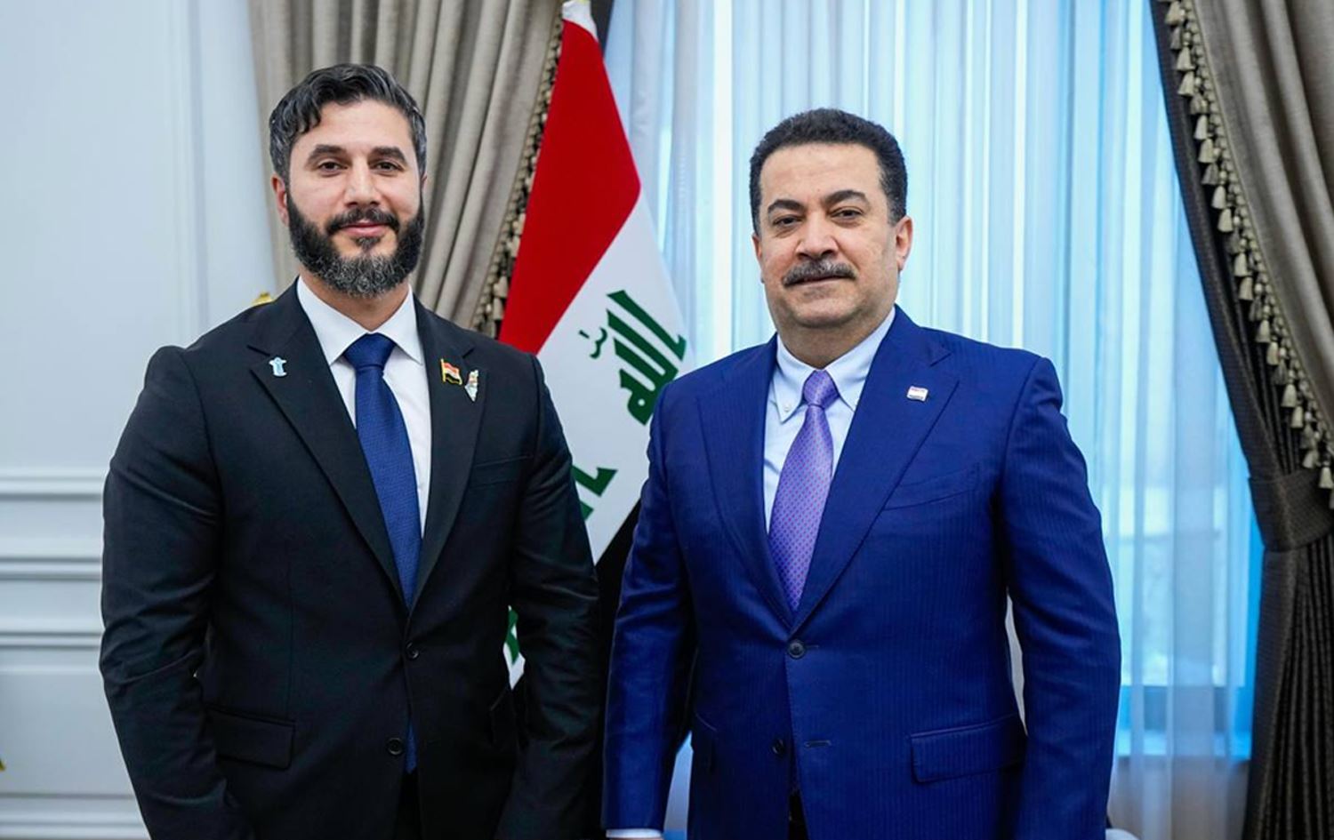 Iraqi Prime Minister Mohammed Shia’ al-Sudani (right) and Mohammed Tahir Abu Rgheef (left) in a meeting in Baghdad on February 23, 2025. Photo: Sudani’s office