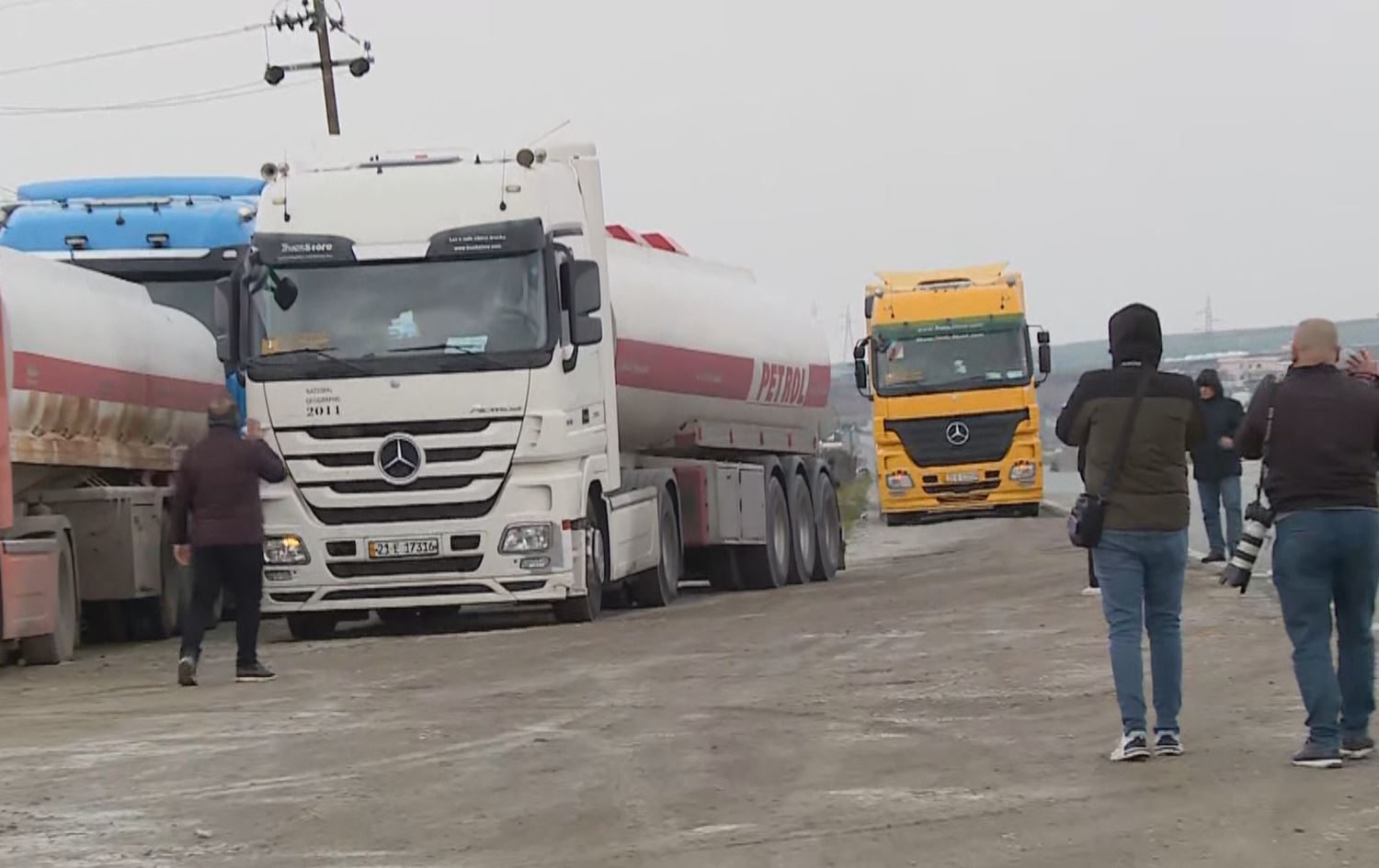 Teachers and civil servants blocking oil trucks passing through Sulaimani-Arbat road in Sulaimani province on February 23. 2025. Photo: Rudaw