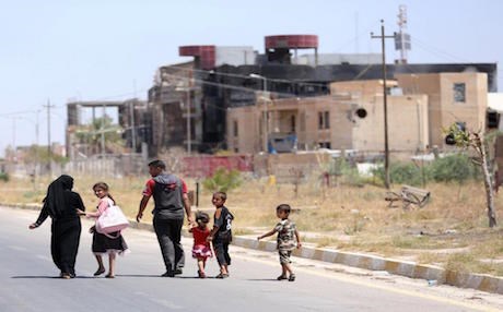 In this Sunday, June 21, 2015 photo, a displaced family walks towards their home in Tikrit, 80 miles (130 kilometers) north of Baghdad, Iraq. Civilians are trickling back into Saddam Hussein’s hometown as they look to start anew, the consequences of a year under Islamic State rule conspicuously written on its charred buildings and damaged homes — AP File Photo.