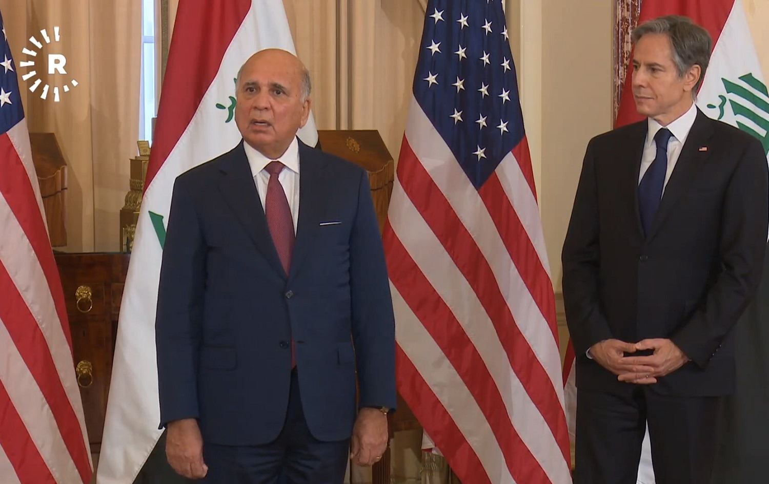 Iraqi Foreign Minister Fuad Hussein (left) and US Secretary of State Antony Blinken (right) made statements to the media in Washington on July 23, 2021. Photo: Rudaw