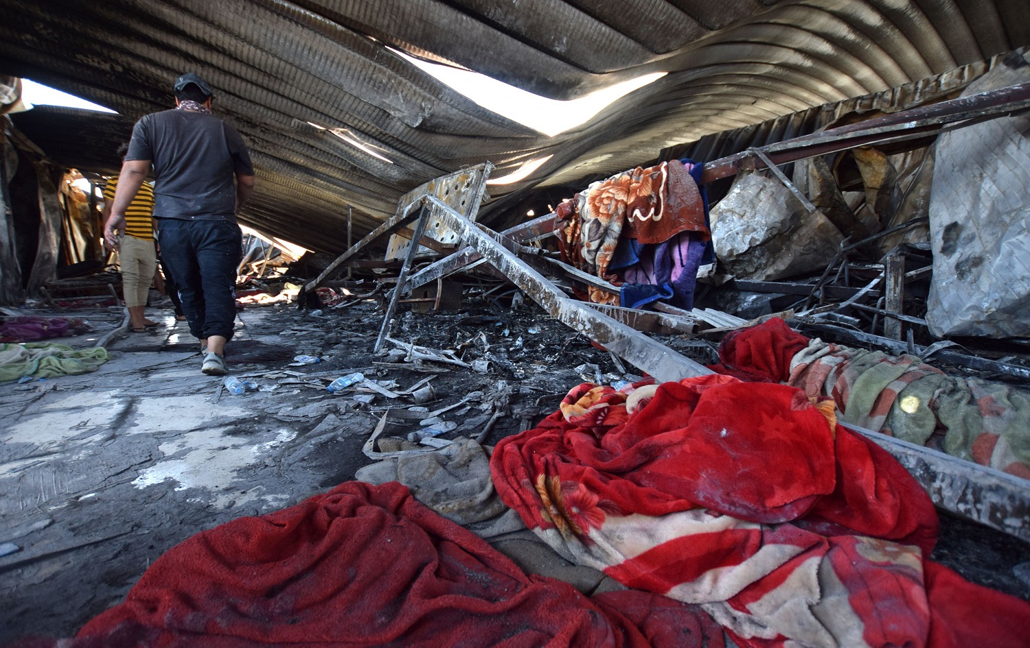 Cover photo: People place fake coffins in front of the burnt coronavirus isolation ward of al-Hussein hospital in Nasiriyah on July 15, 2021. Credit: Asaad Niazi/AFP