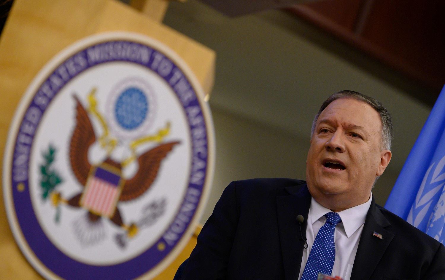 US Secretary of State Mike Pompeo speaks at the United Nations Economic Commission for Africa in Addis Ababa, February 19, 2020. Photo: Andrew Caballero-Reynolds / pool / AFP