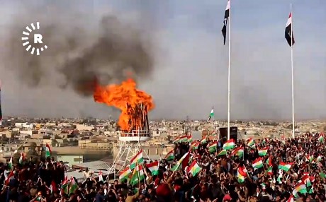 Kurds in Kirkuk, however, donned traditional clothing for new year celebrations, which also saw the Kurdistan flag hoisted over the citadel and a the lighting of a Newroz fire.