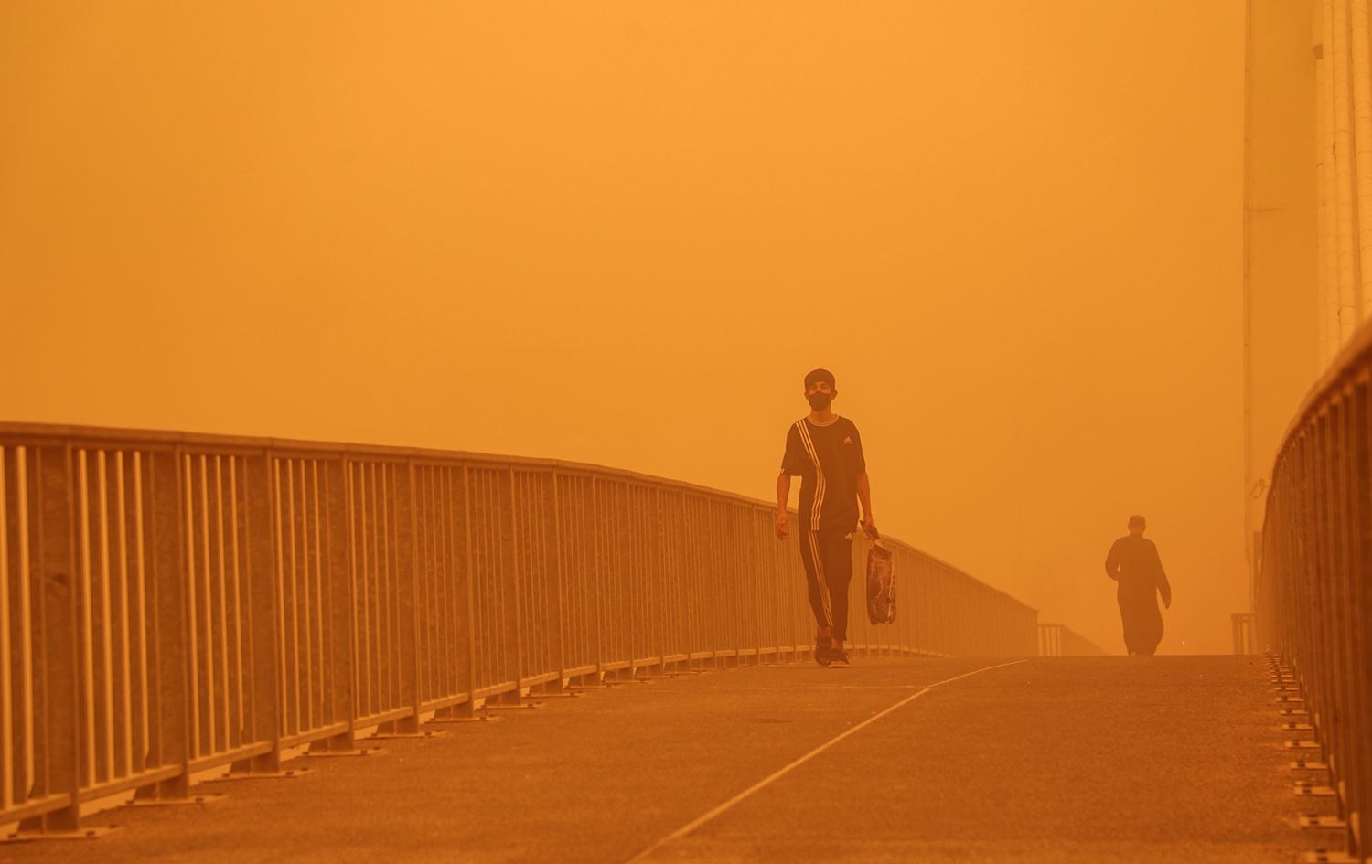 A man walks along the Hadarat bridge in Nasiriyah, Dhi Qar, on May 16, 2022. Photo: Asaad Niazi/AFP