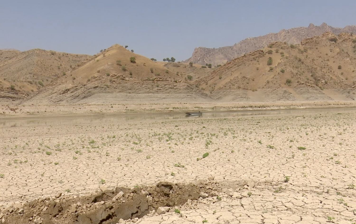 The dry riverbed of the Sirwan runs through Halabja province, on June 30, 2021. Photo: screengrab/Rudaw