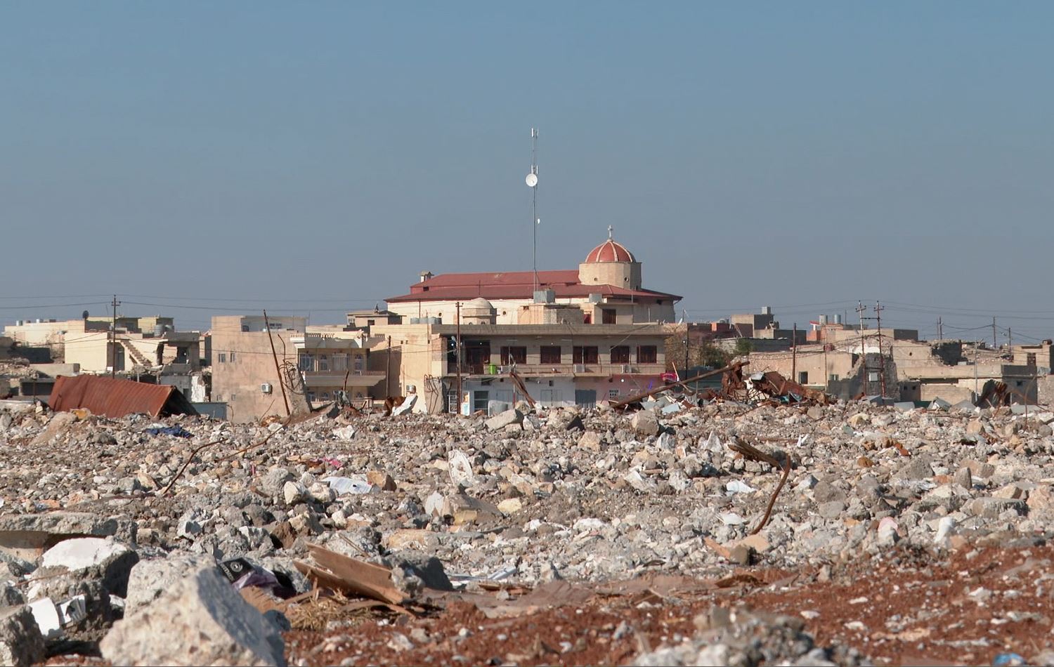 The St Qaryaqous Chaldean Church in Batnaya, 20 kilometers north of Mosul, has not been rebuilt due to a lack of aid.