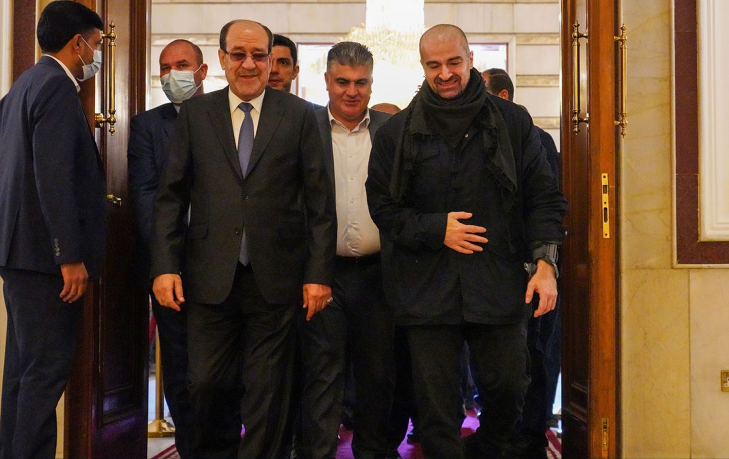 The Coordination Framework’s Nouri al-Maliki (left) and PUK’s Bafel Talabani (right) convene in Baghdad, Iraq, on March 14, 2022. Photo: Bafel Jalal Talabani/Facebook