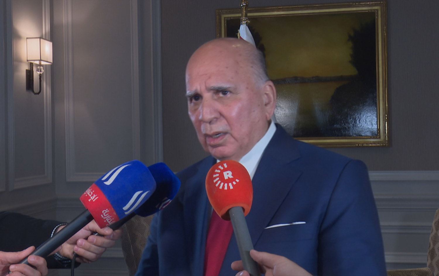 Iraqi Foreign Minister Fuad Hussein speaking to reporters in Washington DC on March 26, 2024. Photo: Rudaw