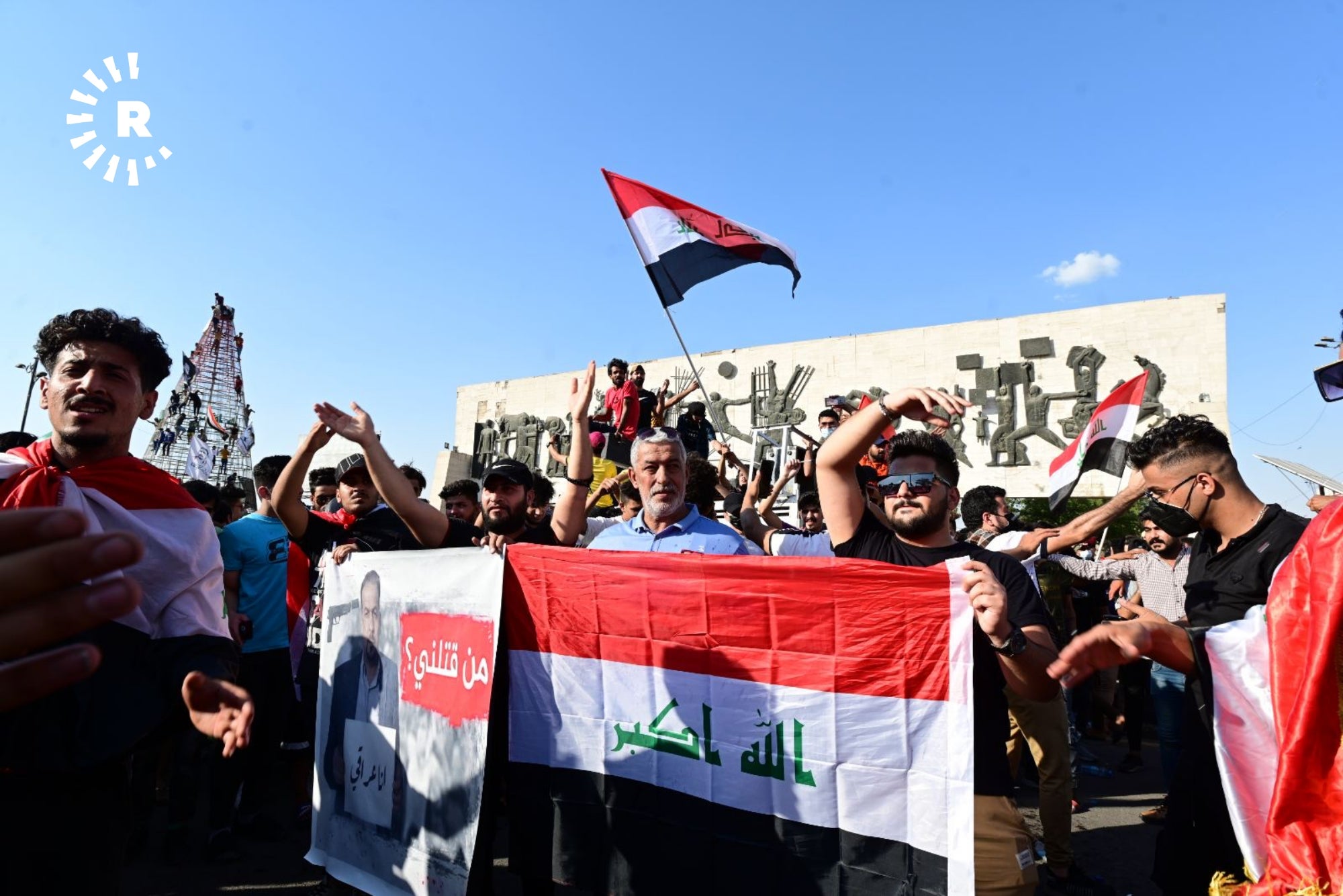 BAGHDAD, Iraq — Thousands of Iraqis protested in Baghdad on Tuesday, demanding justice for slain activists and protesters. Two were killed as demonstrators clashed with security forces who used tear gas and live ammunition.